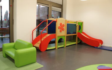 Wir haben helle, freundliche Gruppenräume mit kindgerechter Möblierung. Die Materialien befinden sich in offenen Regalen auf Greifhöhe, um ein selbstständiges Erkunden zu fördern. Unsere Gruppenräume bieten den Kindern verschiedenste Spielanregungen – vom Rollenspielbereich, einer Bauecke, über Tische, an denen gemalt, geknetet oder gebastelt wird, bis hin zu Materialien die die sinnliche Wahrnehmung und Entwicklung von Kleinkindern fördern. Natürlich kommt auch die Bewegung nicht zu kurz. Wir haben ausreichend Möglichkeiten, zu klettern, zu rutschen, Fahrzeuge zu fahren oder auch in unser beliebtes Bällebad zu hüpfen. In jedem Gruppenraum befinden sich Puzzle, Steckspiele, Bücher und anderes Material, um Kreativität, Feinmotorik und vieles Mehr in Ruhe ausprobieren zu können.