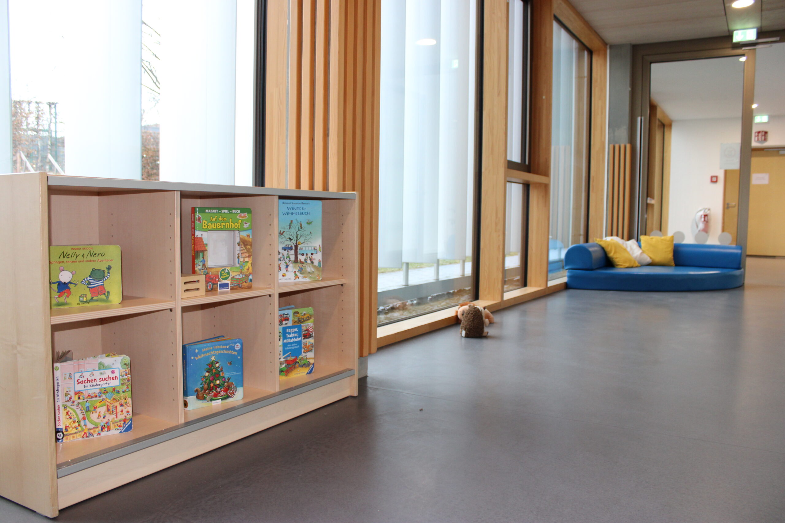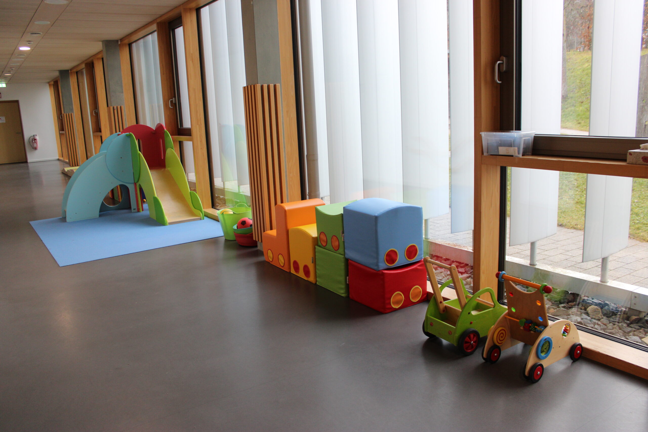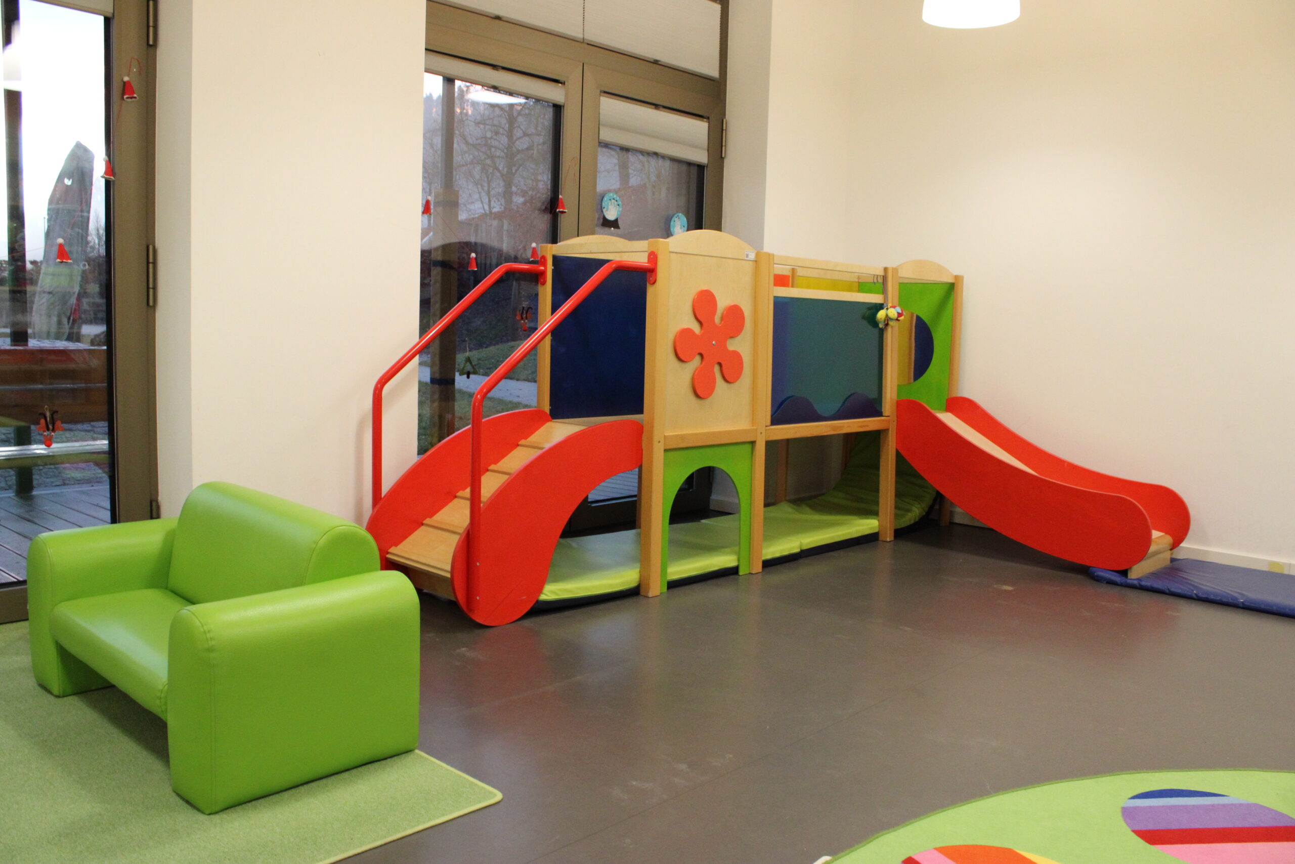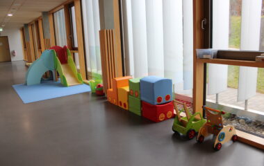 Der U3-Bereich unserer Kita ist speziell auf die Bedürfnisse von Kindern im Alter von 0-3 Jahren abgestimmt. Die Raumgestaltung folgt pädagogischen, sicherheitstechnischen und entwicklungspsychologischen Anforderungen, um eine geborgene, anregende und sichere Umgebung zu schaffen.