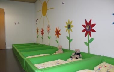 Wir bieten jedem Kind einen individuellen Schlafplatz, in speziell eingerichteten Schlafräumen. Nach dem Mittagessen werden die Kinder behutsam in den Schlaf begleitet.