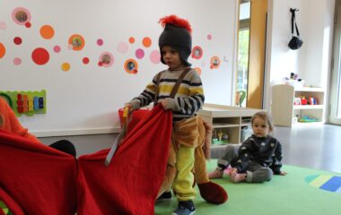 Vor allem für die Kleinsten ist das St. Martinsfest ein besonderes Ereignis. Schon Wochen vorher bereiten wir uns gemeinsam darauf vor. Wir basteln zusammen Laternen, singen Lieder und spielen die Geschichte von St. Martin in unserem Morgenkreis nach.